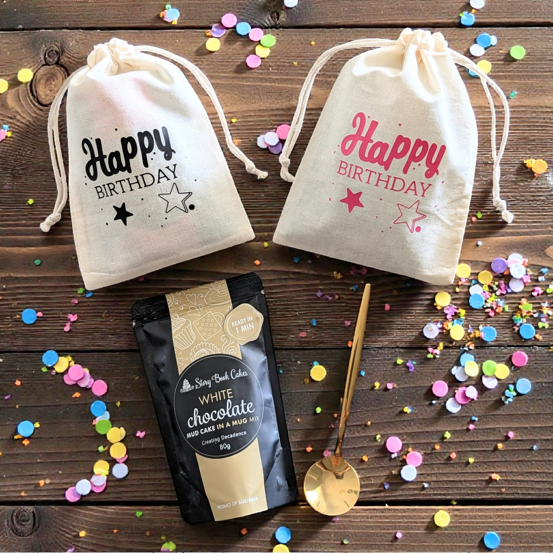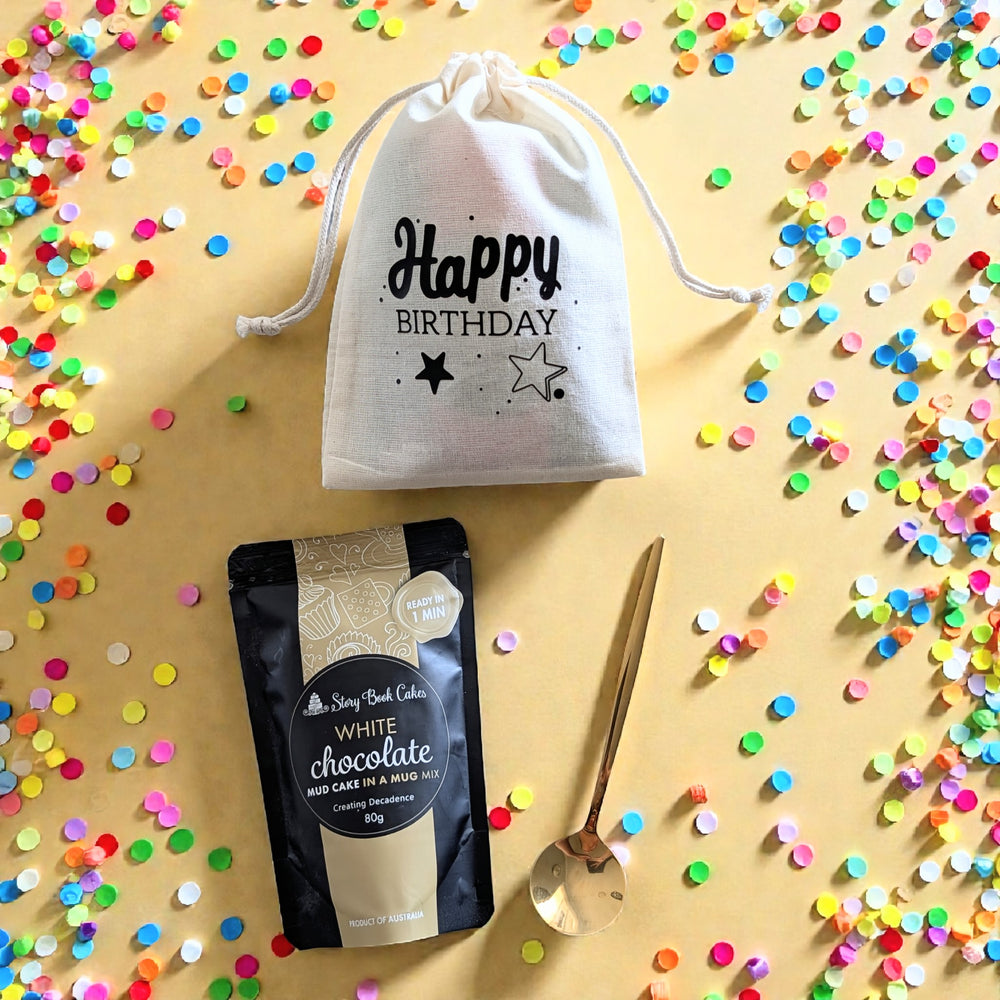 Happy Birthday Gift Bag with 1 Mud Cake in a mug + a cute spoon
