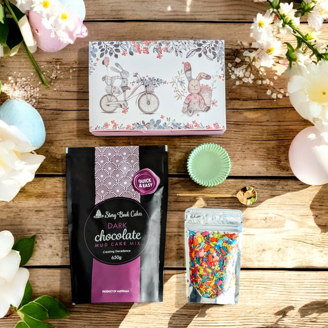 Easter Fairy Bread Gift Bag with 1 Mud Cake in a mug + a cute spoon