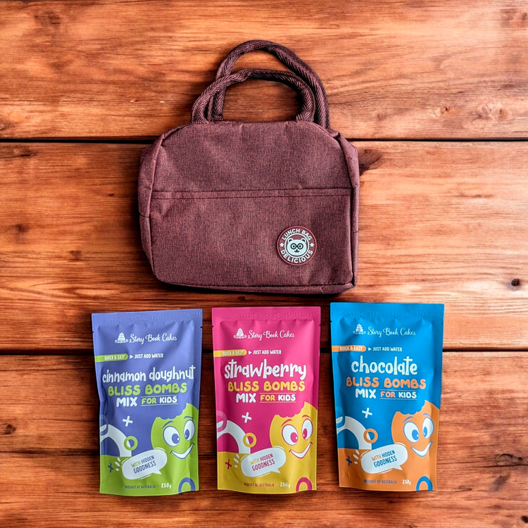 Lunch Pack Kids Bliss Bombs - 3 x Bliss Bomb Mixes in an Insulated Lunch Bag Maroon